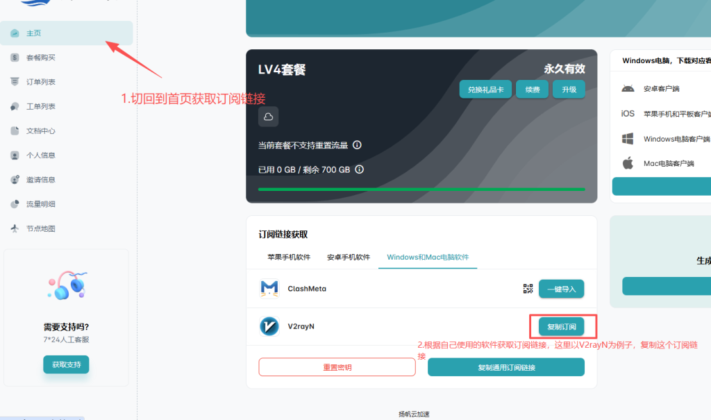 2.获取了订阅链接之后就可以配合你下载的代理客户端去使用了,代理软件有很多,我建议用v2ray: